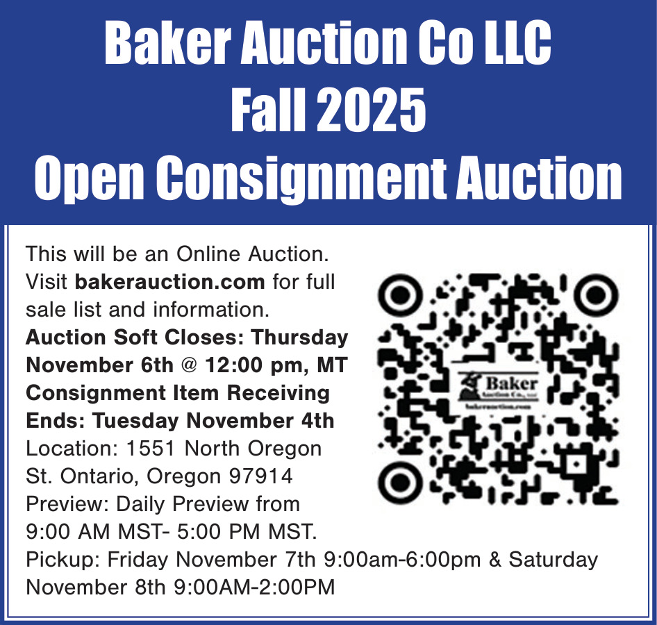 Oct 24, 2025. Baker Auction Co, LLC. Auction Ads from The Idaho Press