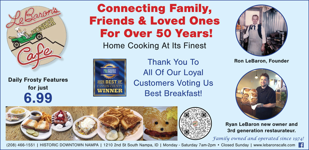 Oct 25, 2025. LeBaron's Honker Cafe Restaurants Ads from The Idaho Press