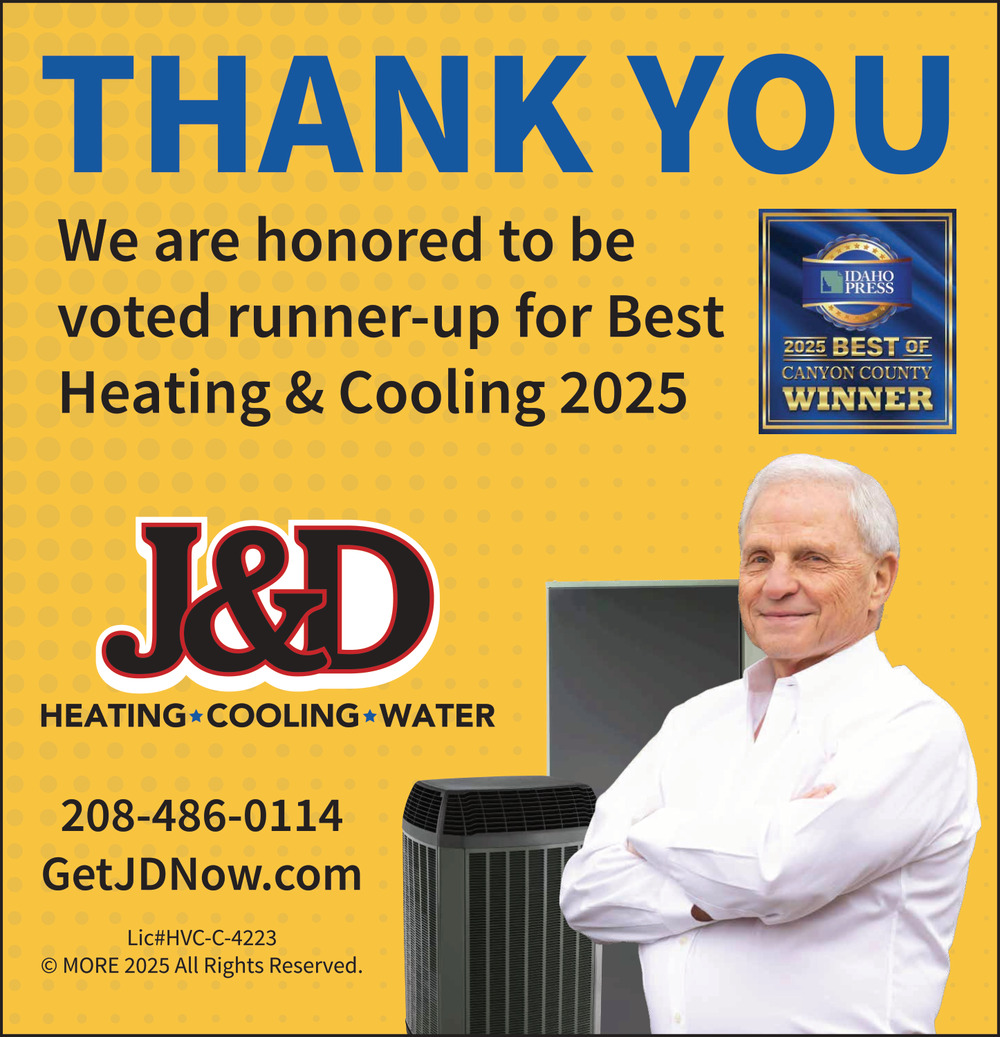 Oct 31, 2025. J&D Heating & Cooling Heating & Cooling Ads from The Idaho Press