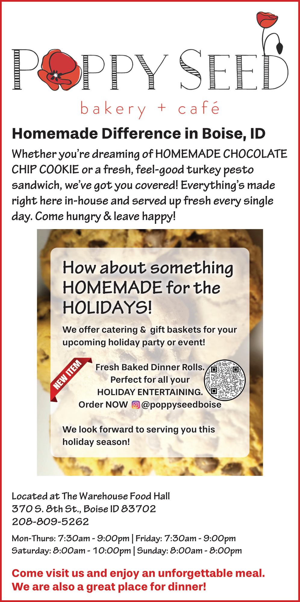 Nov 06, 2025. Poppy Seed Bakery & Cafe Food Ads from The Idaho Press