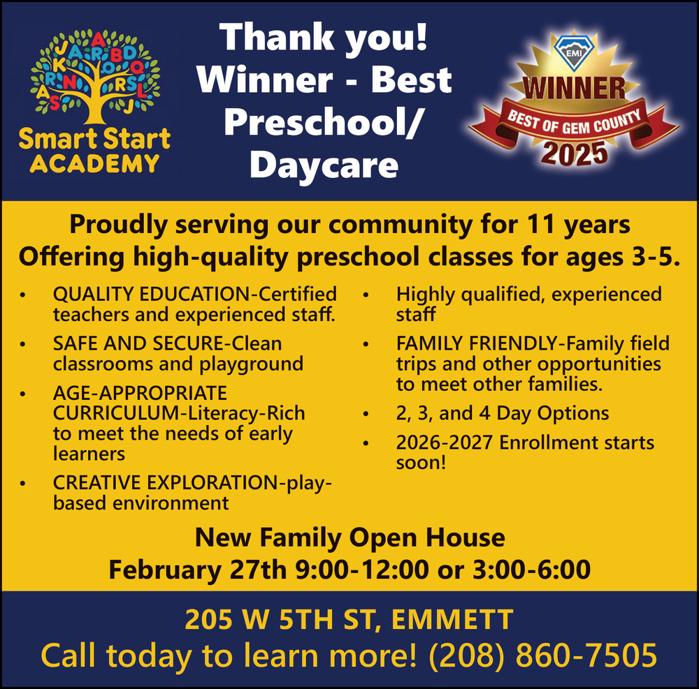 Jan 28, 2026. Smart Start Academy School Ads from The Idaho Press