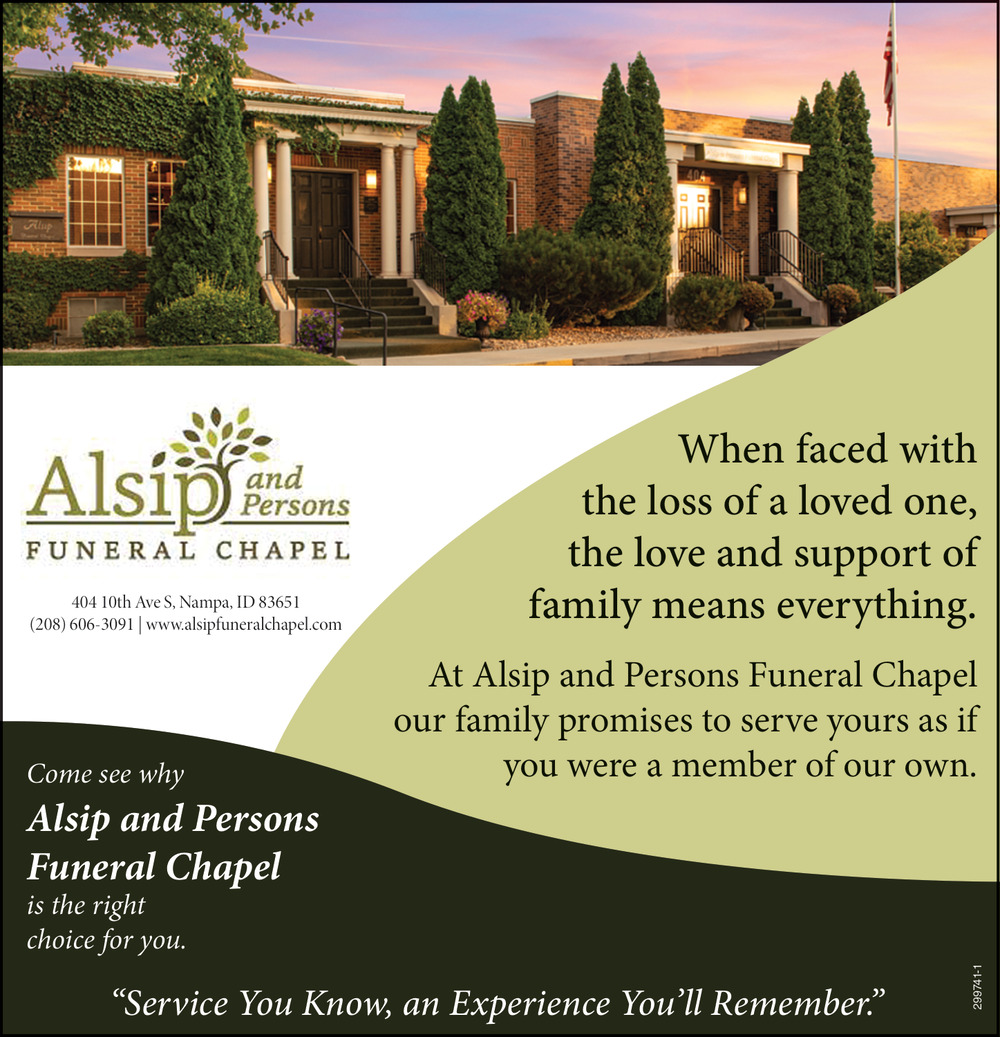 Ads for Alsip And Persons Funeral Chapel in Nampa, ID