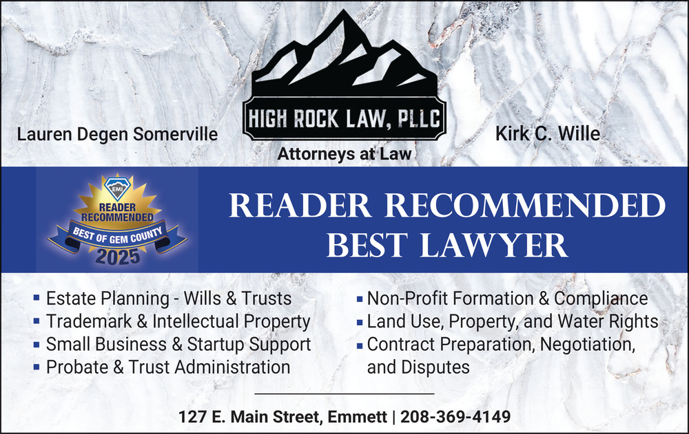 Mar 25, 2026. High Rock Law, PLLC Attorneys Ads from The Idaho Press