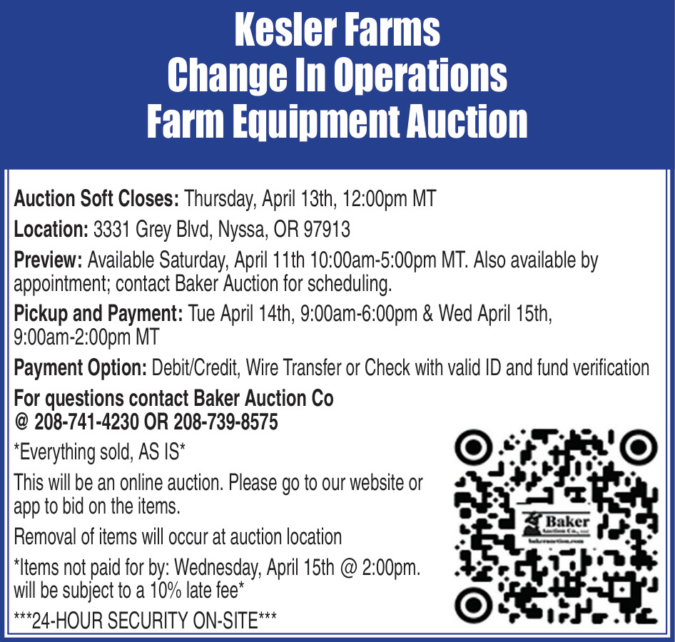 Apr 04, 2026. Baker Auction Co, LLC. Auction Ads from The Idaho Press