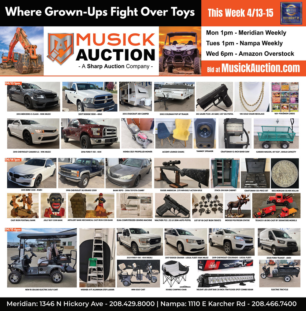 Apr 11, 2026. Musick Auction Auction Ads from The Idaho Press