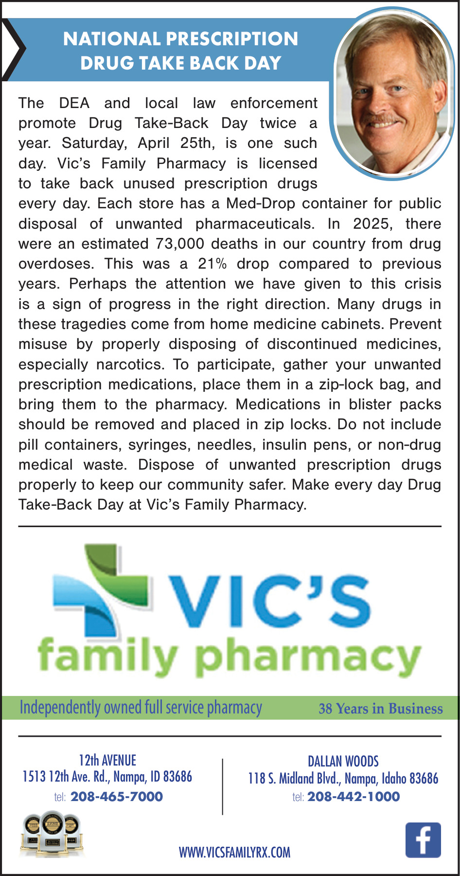 Apr 25, 2026. Vic's Family Pharmacy Pharmacy Ads from The Idaho Press