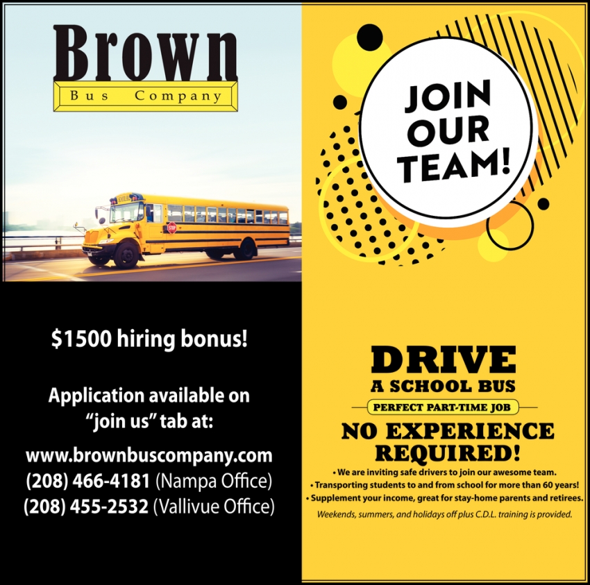 Sep 26, 2021. Brown Bus Company Jobs Ads from The Idaho Press