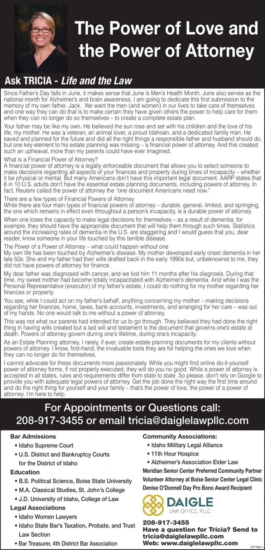 Jun 11, 2023. Tricia J. Daigle, J.D., M.A Attorneys Ads from The Idaho Press