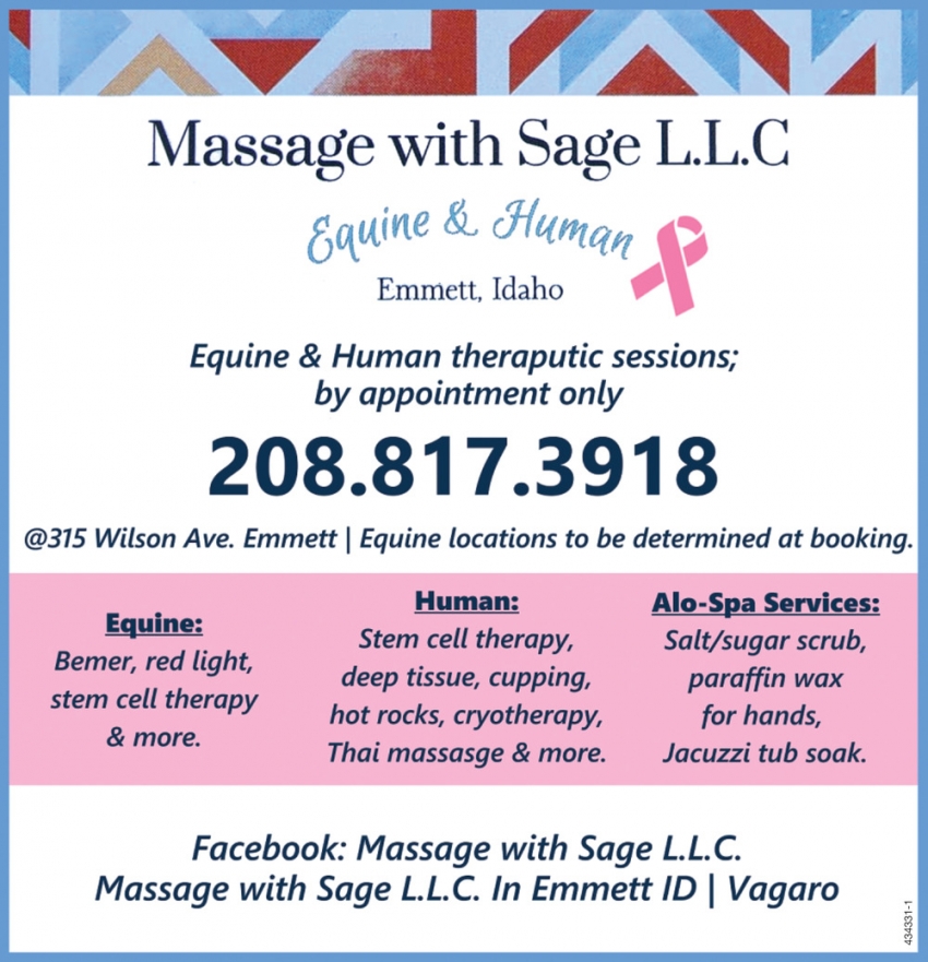 Oct 25, 2023. Massage With Sage LLC Health & Wellness Ads from The Idaho Press